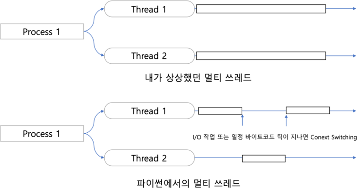 파이썬은 GIL으로 인해 쓰레드를 사용하는 데 제약이 있다.