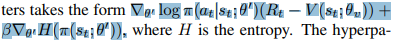 기존 actor-critic에서 추가된 "advantage" 는 High Dimensional continuous control using generalized advantage 논문에서 GAE(Generalized Advantage Estimation)라고 쓰인 개념으로,