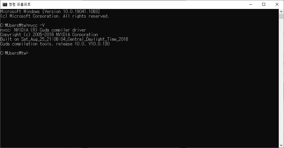 5) 설정이 완료되면 cmd 창으로 nvcc -V 명령어로 cuda 버전이 몇으로 나오는지 확인한다.