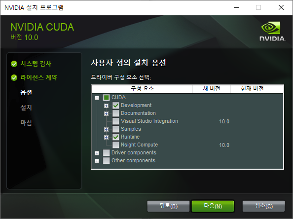 2) 설치 시 사용자 고급으로 설정하여 cuda 관련 라이브러리만 설치한다.
