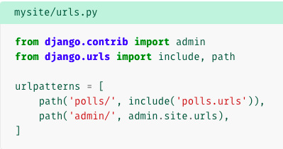 추가사항으로 위의 mysite/urls.py에서 include 라는 메소드가 추가되었는데