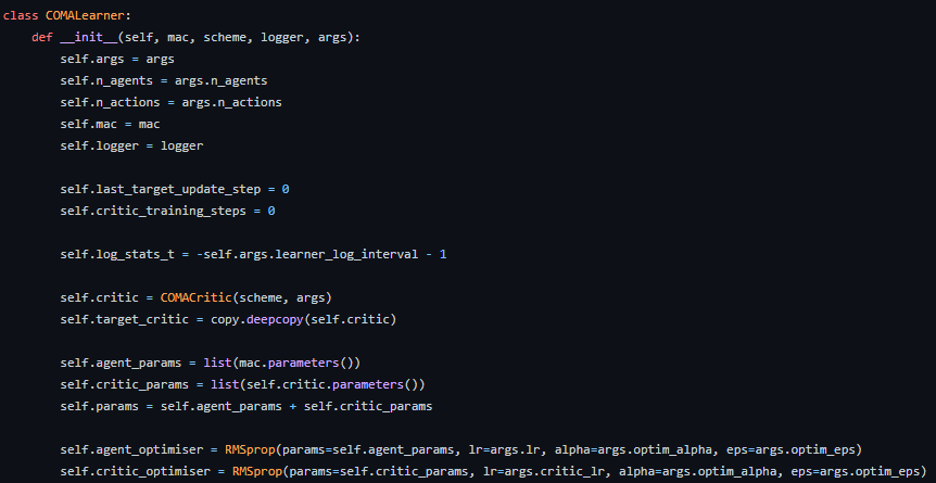 해당 깃허브에선 COMA 에 대한 코드도 제공해주기 때문에 어떤 구조로 학습이 이루어지는지 확인해보았다.