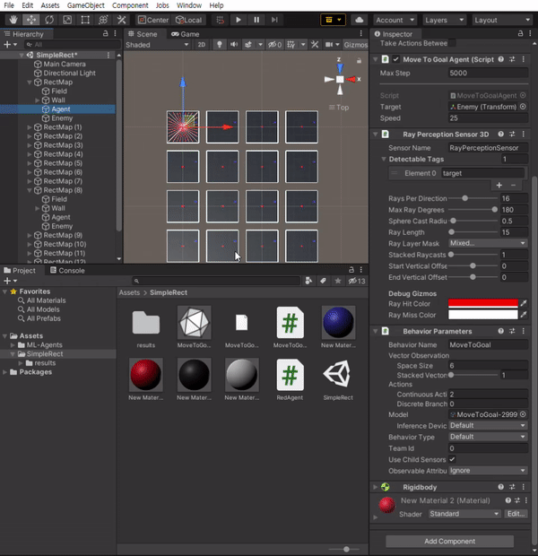 게임이 만들어졌다는 가정 하에서는 ML-Agent 라이브러리를 이용해 강화학습에 필요한 설정들을 추가하고,