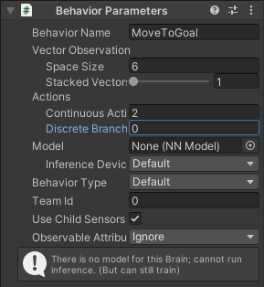 추가한 Behavior Parameter에서는 스크립트에서 추가될 값들에 대해 명시해야 한다.